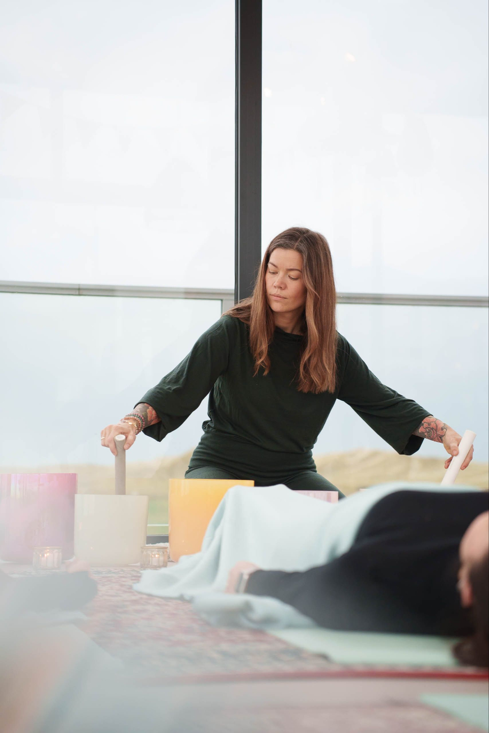 Vi kombinerer bevegelse, stillhet, lyd, ritualer og tilstedeværelse for å skape opplevelser som nærer både kropp og sjel.